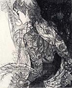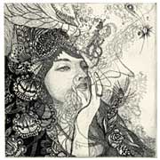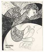 左作品から 『スモーク』98×98mm/エッチング/2002年 『音楽』100×118mm/エッチング,アクアチント/2003年 『詩』100×118mm/エッチング,アクアチント/2003年 『エクスリブリス』100×118mm/エッチング/2003年