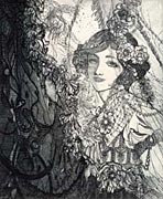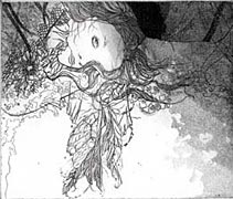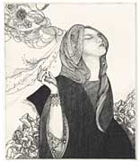 左作品から 『こぼれた水』120×100mm/エッチング,アクアチント/2004年 『朽ちてゆく花』148×178mm/エッチング,アクアチント/2004年 『去ってゆく花』148×178mm/エッチング,アクアチント/2004年